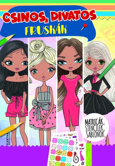 6-10 éves kislányok számára készült a spirálozott foglalkoztató , 1 lap stencillel, ruhamintákkal, papír és fólia matricákkal, sablonokkal.