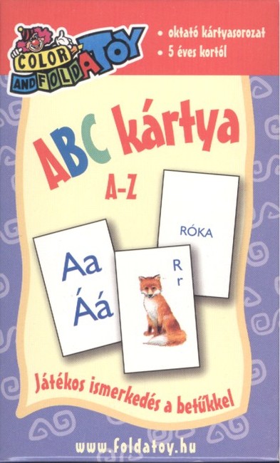 56 db kártyalap (40 db színes, 15 db fekete-fehér és 1 db használati útmutató). A színes kártyák egyik felén a kép mellett a kezdőbetű, a másik felén az ábrázolt tárgy neve szerepel. A betűkártyákon az ábécé nagy- és kisbetűi láthatók nagy méretben. Az ábécé kártyalap két oldalán a magyar ábécé összes betűje szerepel. A használati útmutató ötleteket ad az ábécé játékos elsajátításához, gyakorlásához.