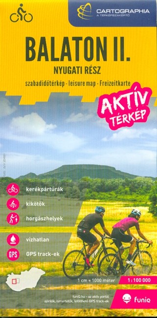 A Balaton környéke az egyik legnépszerűbb kerékpáros úti cél Magyarországon. A legismertebb kerékpáros túraútvonal a Balaton körüli Bringakörút, de a parttól kicsit eltávolodva is számos nagyon izgalmas és látványos kerékpáros útvonalat találhatunk. A Balaton II. Nyugati rész című aktív térkép a Révfülöp-Balatonboglár tengelytől nyugatra eső terület dolgozza fel, és ad tippeket a kerékpáros kalandozásokra.